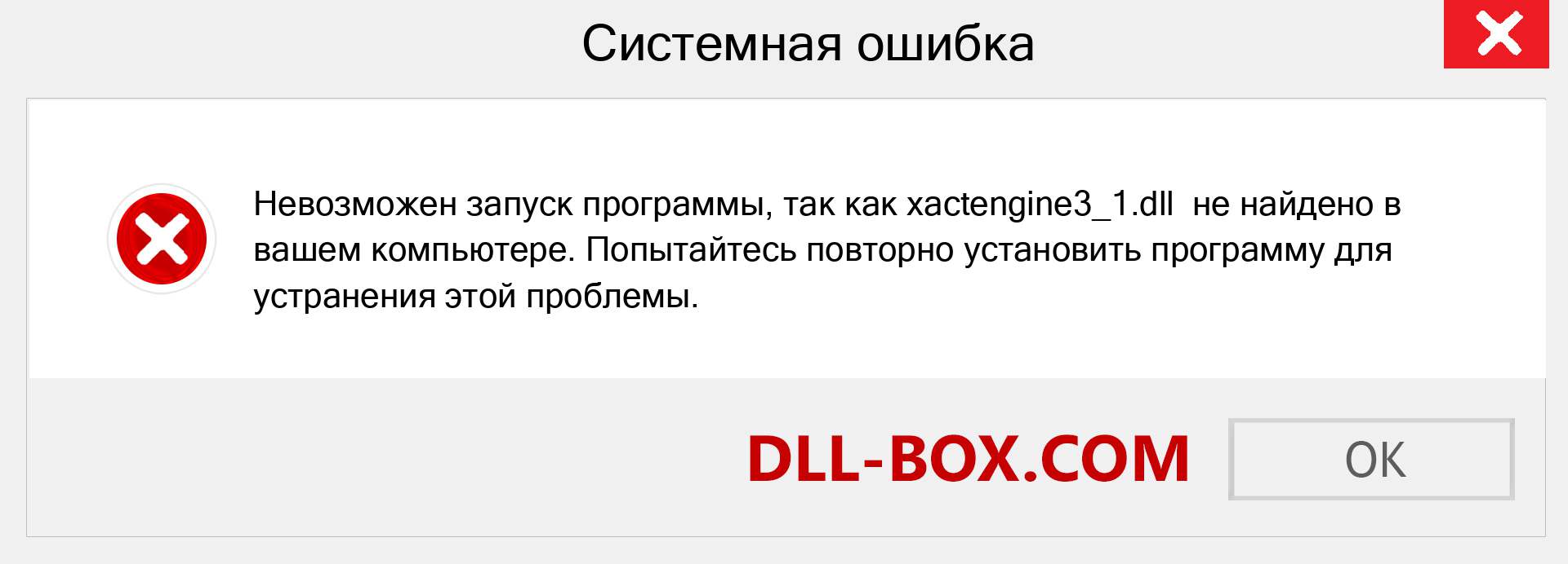 Ошибки, связанные с xactengine3_1.dll, могут возникать по разным причинам. Например, неисправное приложение xactengine3_1.dll было удалено или потеряно, повреждено вредоносным программным обеспечением, присутствующим на вашем компьютере, или поврежденным реестром Windows.